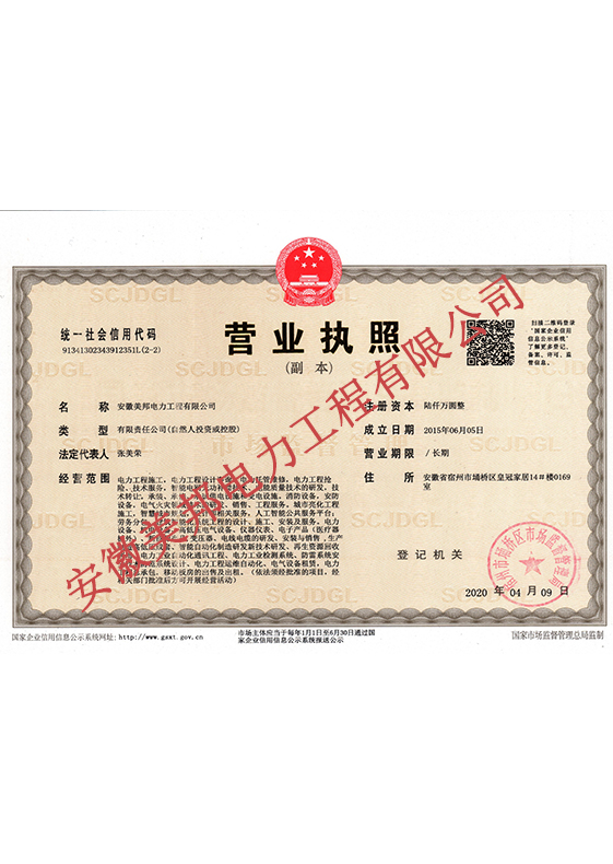 安徽美邦電力工程有限公司成立于2015年6月,坐落于宿州高新區(qū)。是一家從事電力工程設(shè)計(jì)、電力設(shè)備生產(chǎn)、電力工程施工、電力托管服務(wù)、電力工程搶險(xiǎn)為一體的一站式綜合性公司。公司現(xiàn)有各類(lèi)專(zhuān)業(yè)技術(shù)職稱(chēng)的管理人員及大批從事電力工程專(zhuān)業(yè)施…